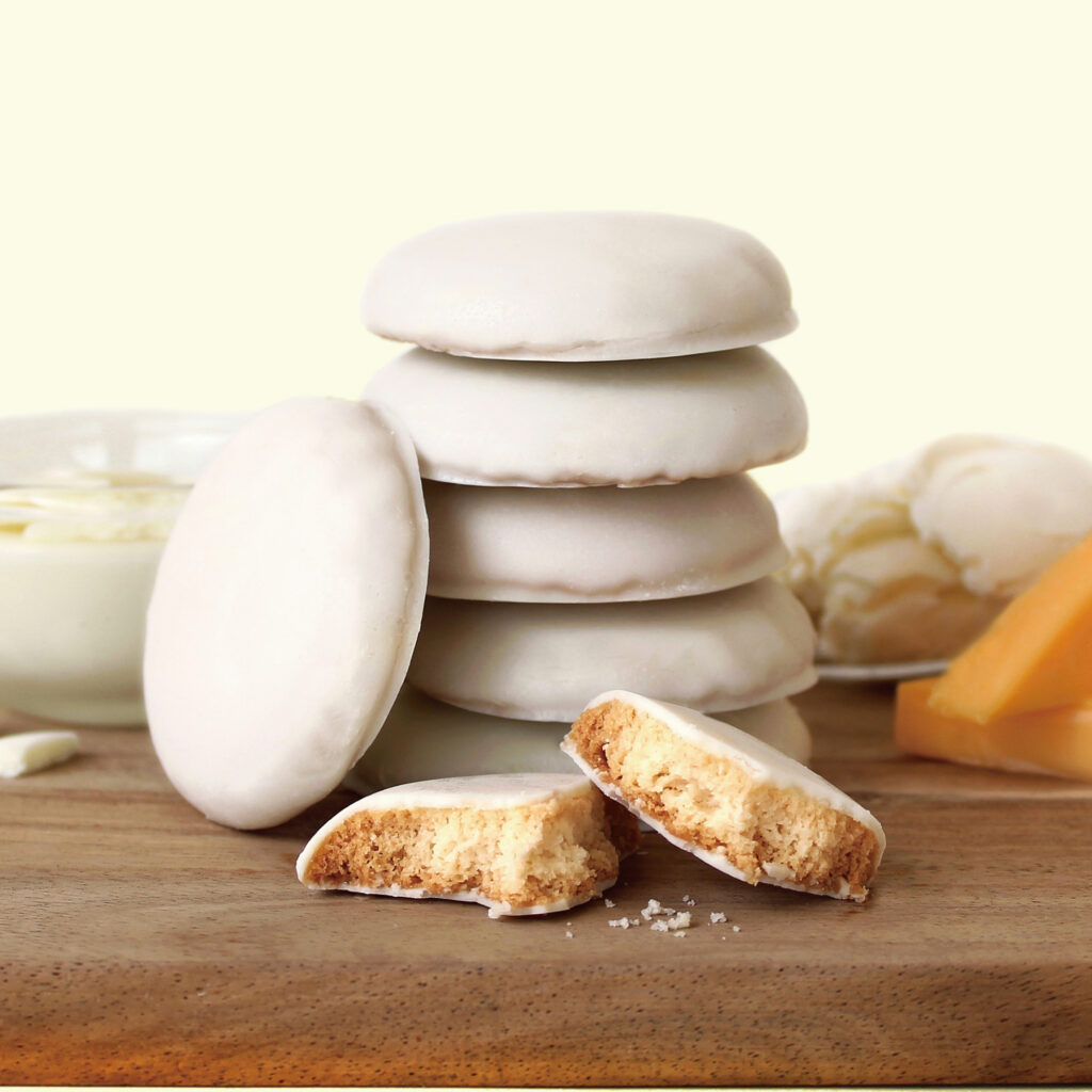 チェダーチーズとクリームチーズの2種から放たれる、塩味とバターの芳醇な旨みが凝縮された「チーズとサブレ」を、ホワイトチョコでコーティング。まろやかなチョコの甘さとチーズの風味が、口の中で溶け合う贅沢な味わいをお楽しみください。通販限定で「Especially for you(大切なあなたへ)」限定タグ付きです。